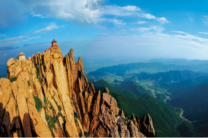 芦芽山因形似一“芦芽”而得名,海拔2736米,主峰绝顶约10平方米的石坪上,巍然托起一座石砌建筑——太子殿。据考证,芦芽山是中国唯一的毗卢佛道场,太子殿即为佛顶。